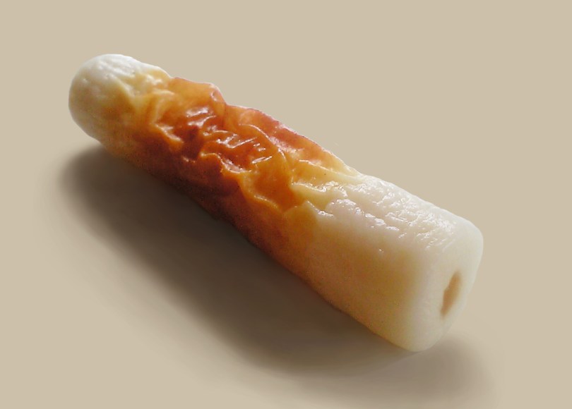 應該很多人吃關東煮、或是切一盤黑白切來吃的時候,都會點圖片中這個外表黃黃但裡面卻白白的竹輪吧?
