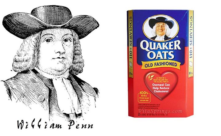 好的,其實他正是創立英屬賓夕凡尼亞殖民地的創始者,William Penn(威廉佩恩),也因為其領導貴格會的鮮明形象,便被選中作為燕麥片的永久代言人(?);不過他一生中並沒有因為代言燕麥而致富,因為他在代言燕麥之前早就走入歷史了(好哀傷)。