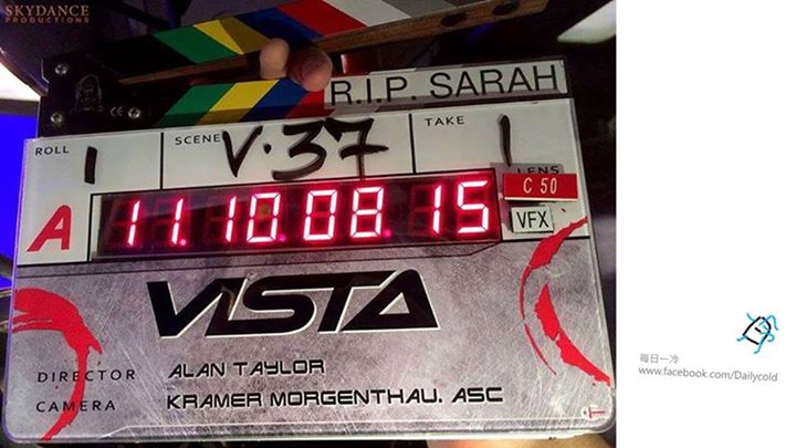 這是一塊好萊塢的場記板,屬於最近剛開鏡的魔鬼終結者系列電影。眼尖如你,可能注意到場記板上有著小小的一行字:R.I.P Sarah。由於魔鬼終結者系列有個知名角色也叫Sarah,大家很容易做出劇情上的聯想,但這行字的故事跟電影幕後工作更加密切。