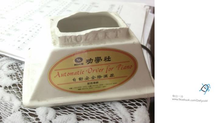 是的,因為台灣氣候潮濕,基本上鋼琴「裡面」一定會裝一條除濕機,或者嚴格來說,是除濕棒。可惜有的人不明白其中的道理,彈了鋼琴十幾年,卻沒有打開鋼琴來看過,不知道鋼琴裡面有放了一條除濕棒,雖然知道鋼琴買來有附除溼機,卻還以為是放在鋼琴的「上面」呢!
