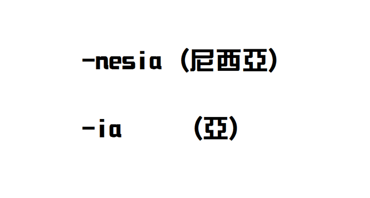 還記得太平洋各個諸島,波里尼西亞(Polynesia)、美拉尼西亞(Melanesia)、密克羅尼西亞(Micronesia)嗎?他們的共同點就是都有nesia~