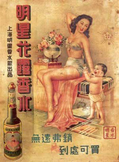 明星花露水首創於清光緒34年(1907年)的上海灘(比小編想的還要古老…),上海藥商周邦俊所研發調製。當時市面上的花露水都是一旦沾在衣服上便難以洗淨的黃色,而周邦俊所研製出的花露水,即使不小心沾染在衣物上也能輕鬆洗淨,因此推出後受到廣大歡迎。墨綠色的玻璃瓶身上是個穿著粉紅色露肩洋裝、雙手拉開裙擺、翩然起舞的女孩。這樣的形象在當時是時髦的象徵,倍受年輕仕女喜愛。在當時上流社會女孩最喜愛的香水之一便是明星花露水!