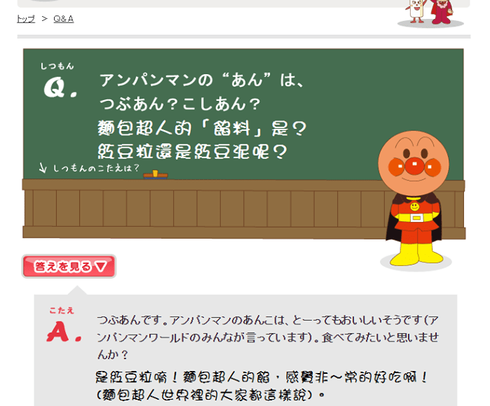 在麵包超人官網內有一個麵包超人Q&A單元。