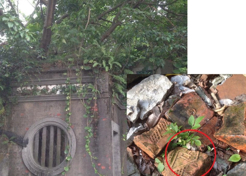 在這座傾頹的宅邸地面上,散落著許多的磚頭,磚頭上都有T.R兩個英文字母。究竟這個T.R代表什麼的縮寫呢?