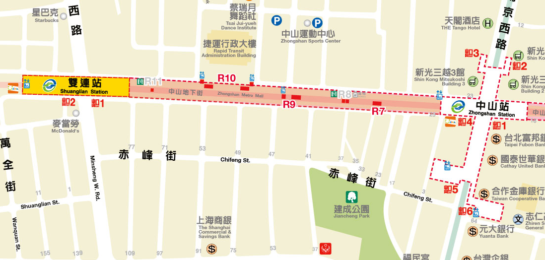 不過相信各位學過英語的讀者一定都有過這樣感覺:凡是有慣例的事物,就很討厭地一定會有例外。台北捷運的出口編號也是。例如新店線等南北方向路線上的車站,則是由西南角開始編號;同為南北向的淡水線雖然線上的車站大多只有一個出口,但是確實也依照此規則,由西南角開始編號。