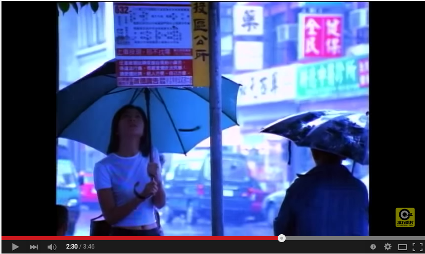 我們只好繼續把影片往後播放,則會發現陳綺貞在北投區公所的站牌下撐著傘等公車!