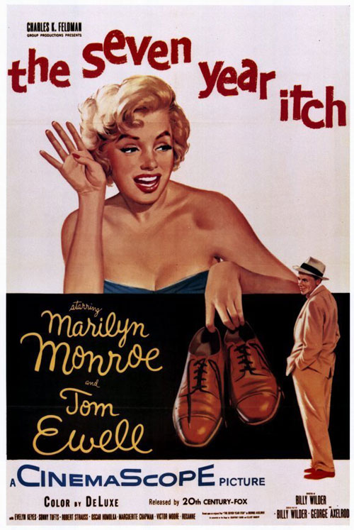 1955年瑪麗蓮夢露即演出了名為《The Seven Year Itch》的電影,故事主角即為一個幻想著與美女鄰居(瑪麗蓮夢露飾演)外遇,又同時想像著其醋勁大發的妻子前來抓姦的男子(編按:這世間竟然有此等無聊的男人)。