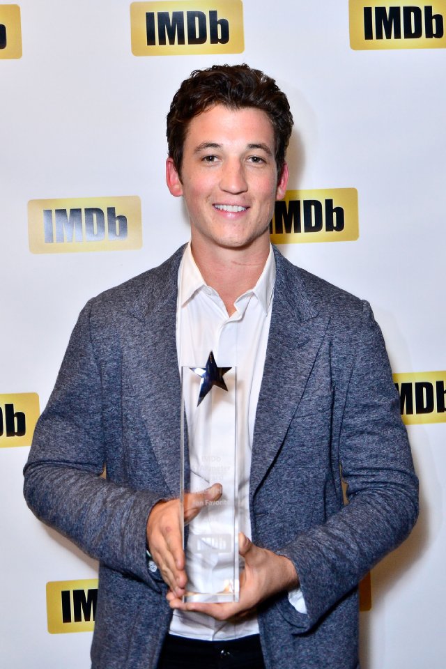 (下圖為小鮮肉Miles Teller領取2014 IMDb STARmeter Award人氣獎)