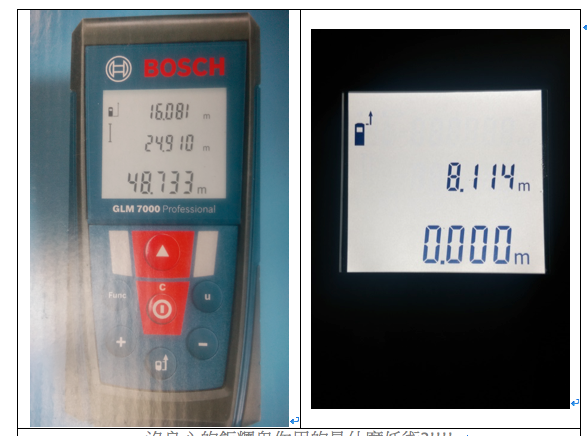 再來還需要量測冷尺的距離,我們在此有請最近意外捲入福斯髒柴油風雲註二的BOSCH大神出馬!經過量測拍攝點與冷尺間的距離是 [math]8.114[/math] 公尺。