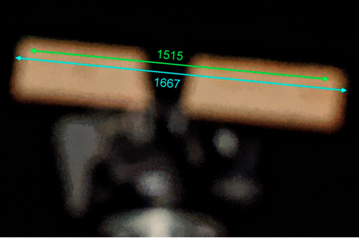 再來就是試圖量測冷尺的視直徑了,因為我沒把冷尺調整成跟月面視直徑一樣寬,因此需要量測他在畫面中所站的角度是多少,再去和月面視直徑做比較。由於輪廓是模糊的,所以只能取能區分的到的最大與最小邊緣平均值,因此最後將冷尺在畫面中所占的視角視為1591pixel。