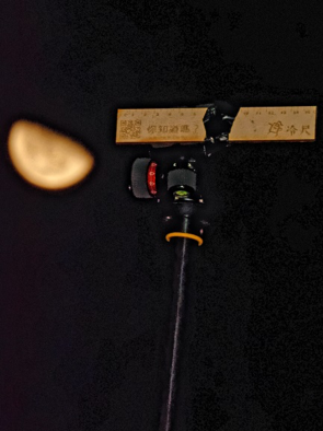 沒辦法這是缺乏良好觀測地點及觀測小天使(?!)幫忙下倉促成行的結果,月球升起的速度比記憶中快上不少,若無法即時將影像擷取下來,冷尺與月球將難以被呈現在同一幅視野當中,我與冷尺的距離一定要拉到越遠越好才行!否則將會面臨到一個讓人崩潰的問題。