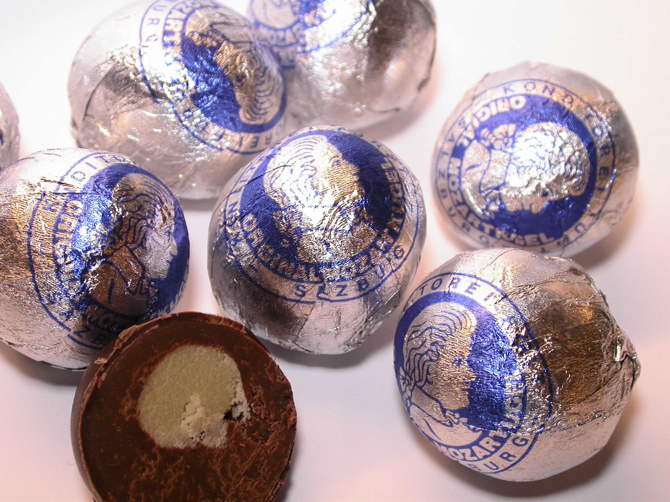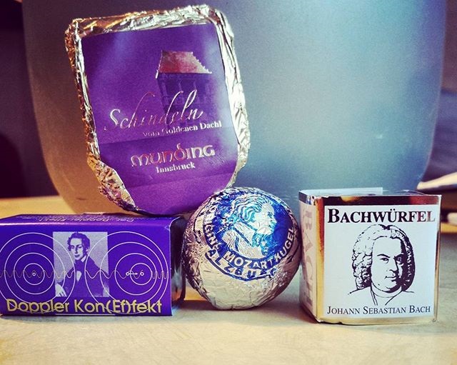 「是啊,」星期五繼續說。「雖然莫札特對於這個故鄉並沒有太多的好感,但薩爾茲堡卻好像要沾光似的,到處充斥著莫札特的痕跡。而這位從外地來到薩爾茲堡的糕點師傅,就想到利用莫札特的名聲,來吸引當地人購買。結果沒想到,當『莫札特巧克力(Mozartkugel)』這個簡單的構想推出之後,就被當地各家糕點店相繼模仿。」