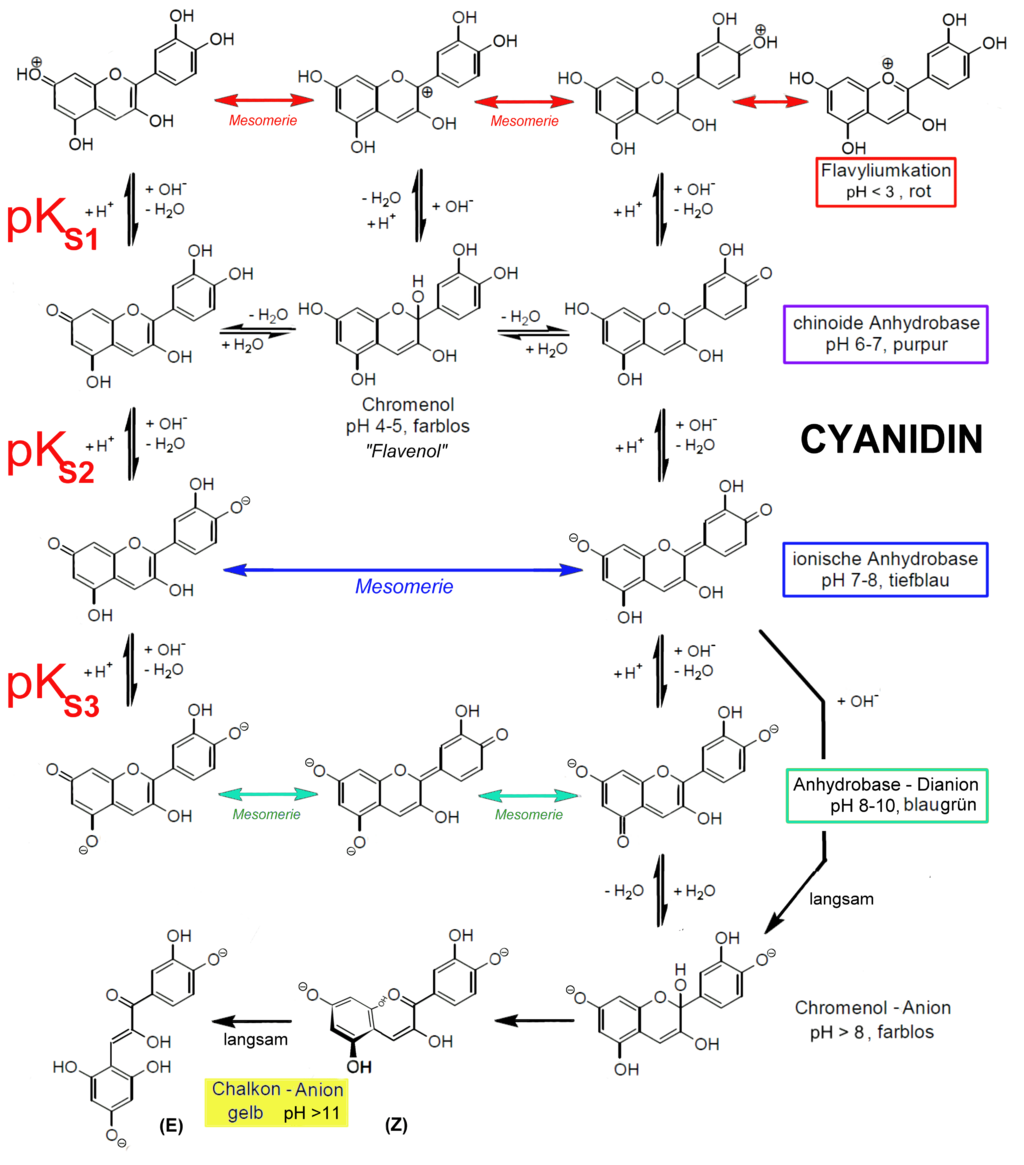 也許你還記得國中理化課時,用紫色甘藍菜汁的顏色變化來測量酸鹼的實驗。紫色甘藍菜汁之所以能夠成為指示劑,是因為當中的植物色素花青素(C15H11O6)會根據酸鹼度呈現不同的顏色。實驗中,當花青素碰到如食用醋等酸性物質時,會呈現紅色。