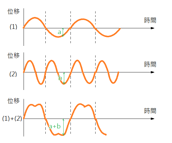 如果將兩個相差3Hz的聲波疊加,每次從小聲變大聲再變小聲花費的時間會是1/3秒。