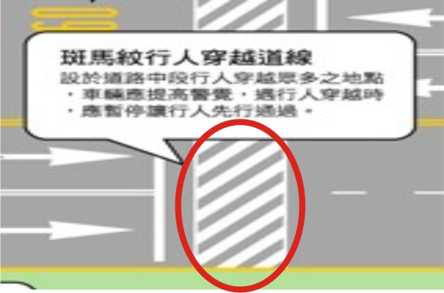 另外再介紹一個跟斑馬相關的冷知識。你知道我們習以為常的斑馬線其實只是一種統稱,它又被細分為枕木紋行人穿越道與斑馬紋行人穿越道。一般常看到的直線型斑馬線應該要被稱呼做枕木紋行人穿越道,總是會被畫在交叉路口;而斜線型斑馬線才是斑馬紋行人穿越道,它是在道路中段才會出現的。