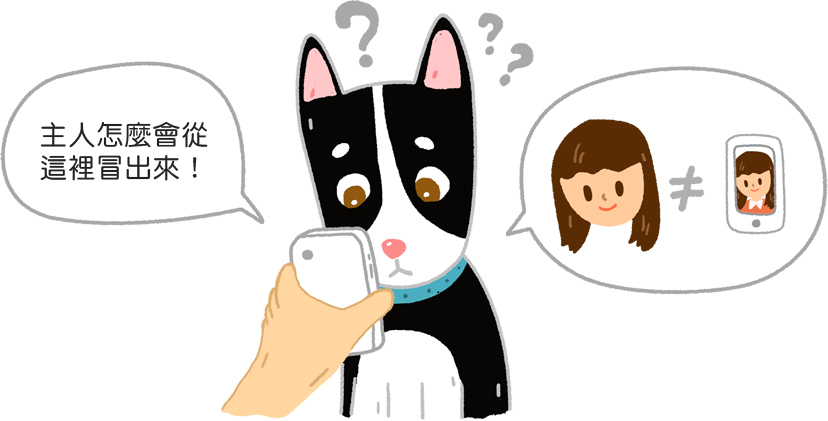 狗狗雖然可能在螢幕上認出你的臉,但是你竟然只有一顆頭,沒有身體,大小也不一樣(我的主人才沒有這麼小一個!)牠們會覺得非常奇怪,所以才無法想像平常的主人跟現在手機或平板中的主人是同一個人唷!甚至有些狗狗在電視上看到主人,還會繞到電視後面看看有沒有人呢!