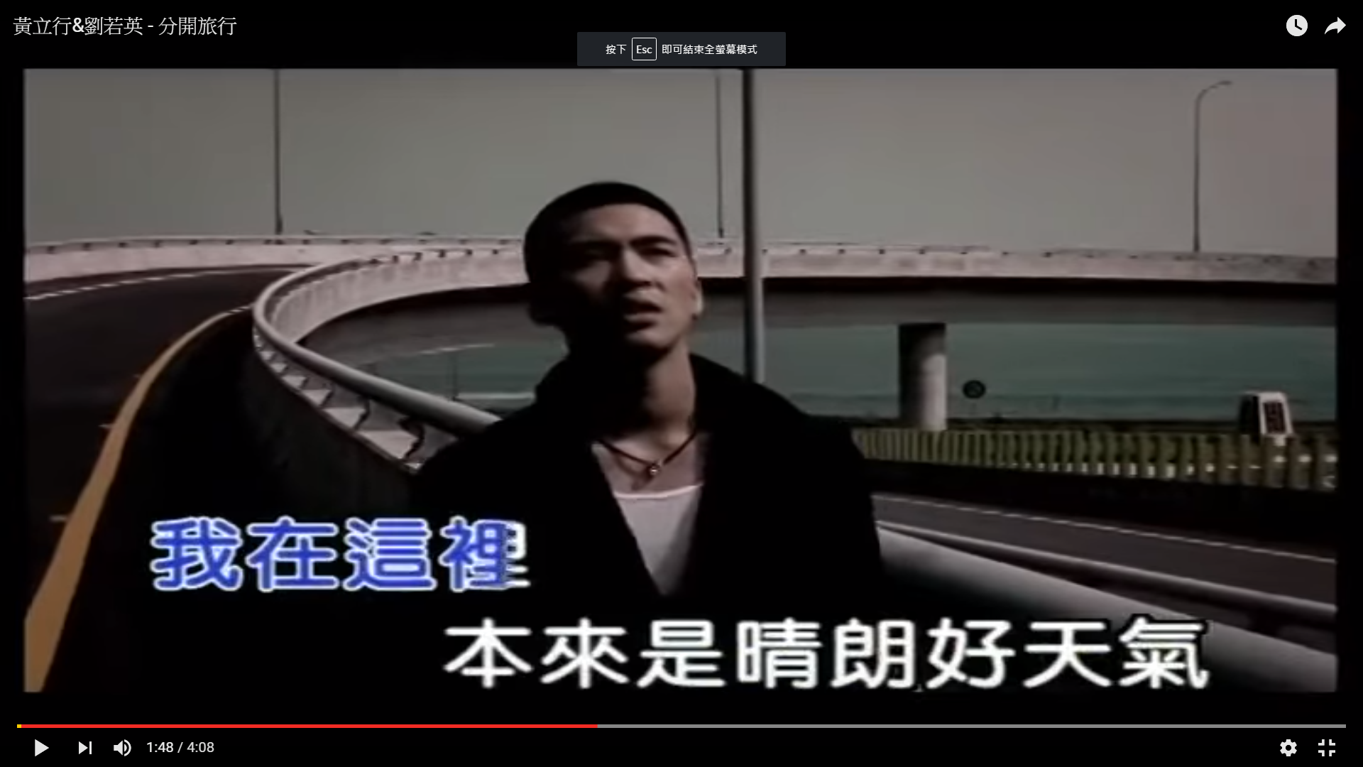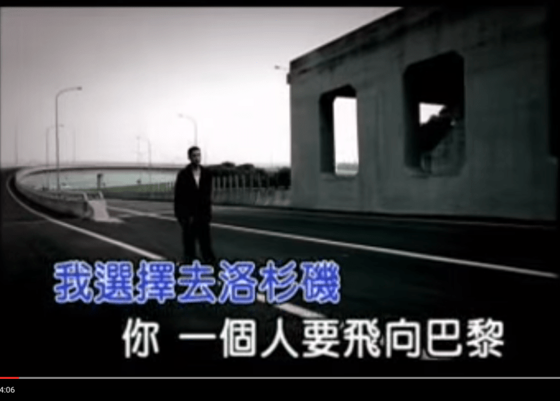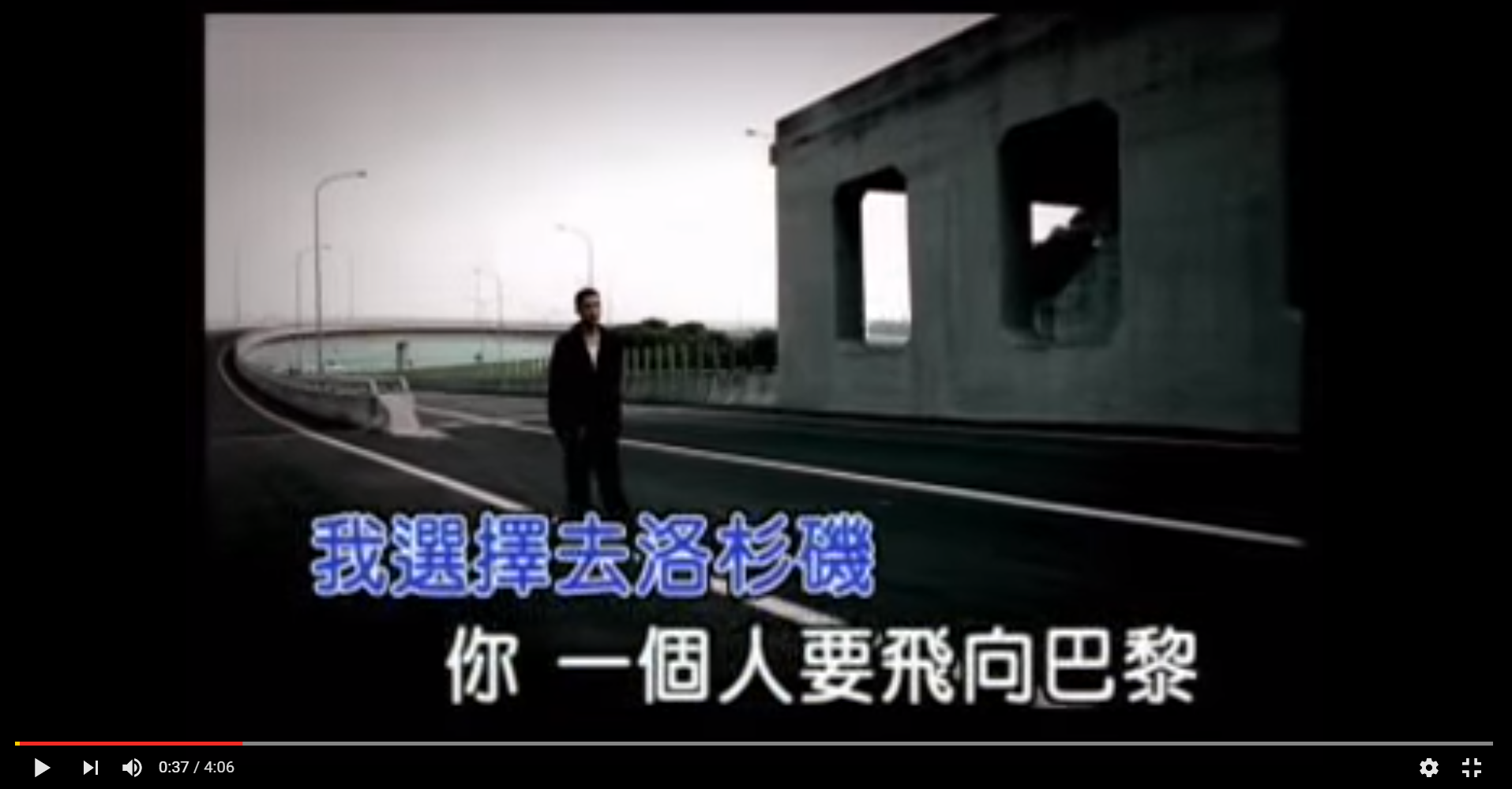 0:42秒的地方,我們可以看到黃立行說尊重劉若英一個人去巴黎,自己卻孤單的走在高架上。由此可見至少,在拍這支MV的時候黃立行可能還沒有收好行李準備去洛杉磯是走在右手邊有明隧道的高架上。