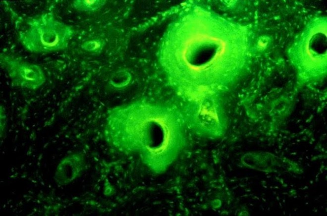 就這樣,這名未來的人類學家意外在西元前 500 多年至前 300 多年的努比亞木乃伊化石中發現了沉積在骨質中抗生素。在顯微鏡下,這些古老的骨頭標本中發出了如鬼火般的螢光綠色,顯示沉積在骨頭裡的抗生素應該是四環黴素。