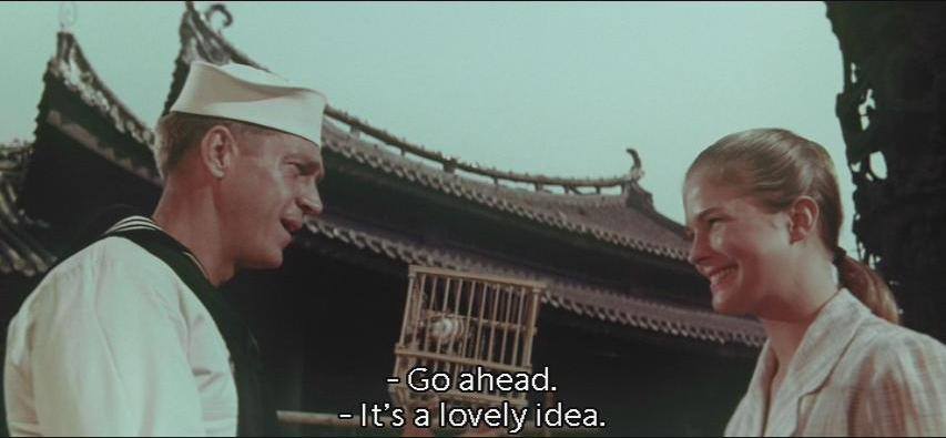 男主角 Steve McQueen 當時也因喜愛跑車聞名,在台拍攝期間將其跑車由美國用輪船載來台灣,駕車出遊時隨身佩戴手槍自保。拍片時穿著海軍衣衫,與一般美國水手無異。空閒時駕著跑車在台北市漫遊,由於跑車轟轟聲音很大,而當時淡水的車輛也不多,所以總是非常引人注目。在八個月拍攝期間,他與家人皆長住圓山飯店,其後其妻 Neile Adams 在DVD收錄花絮訪談中大力批評戒嚴期間的台灣並無半點自由,完全不似台灣向美國宣導的自由形象。甚至在拍攝完成後 Steve McQueen , Robert Wise 兩人還因此片對當時國民政府的負面描繪而被扣留台灣,二十世紀福斯公司才知事情不妙,用捐款的名義付了好大一筆贖金才將兩人贖回美國。