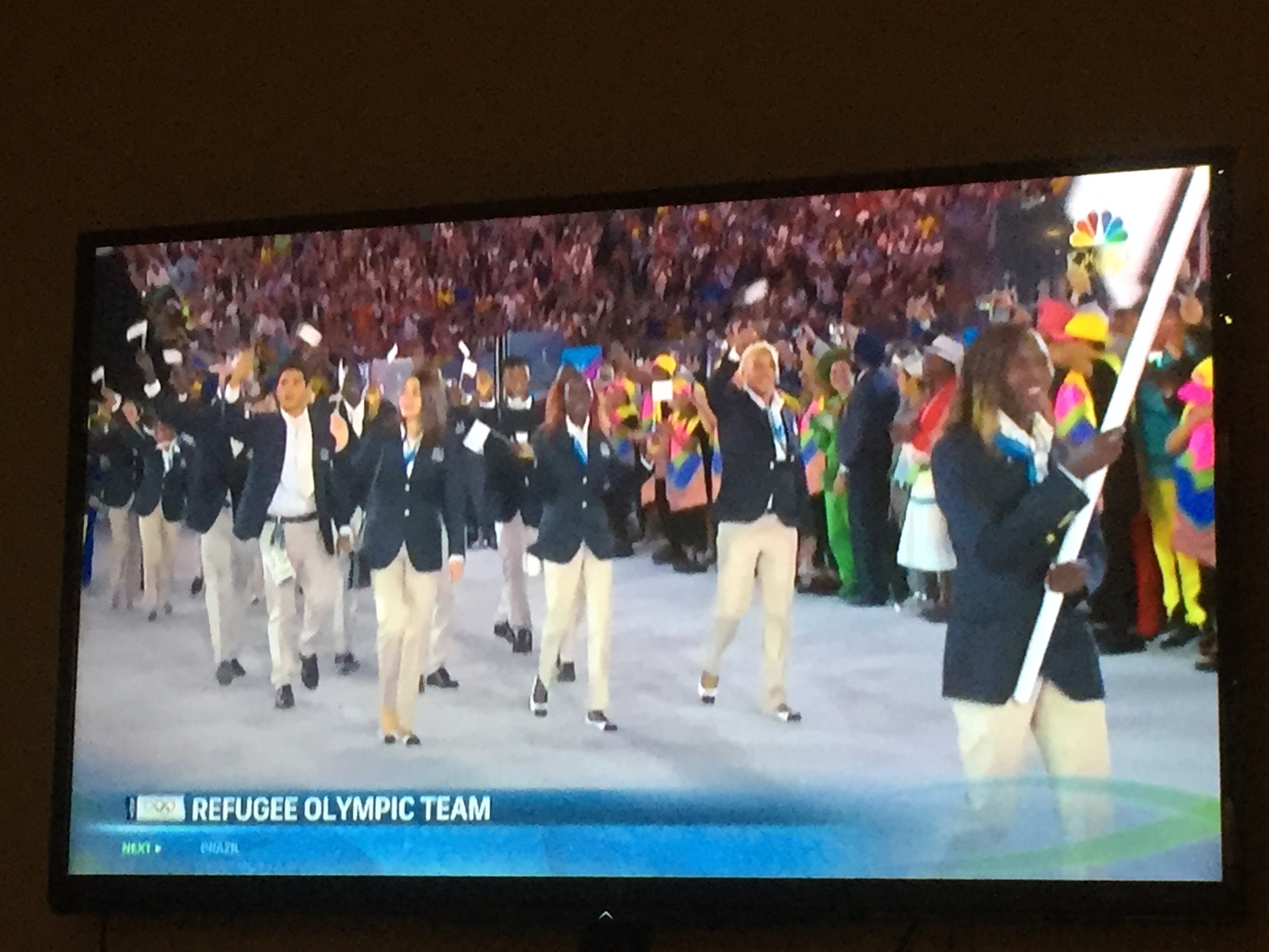 原來根據近代奧運會的慣例,奧運開幕式的運動員出場,除了固定由奧運的發源地希臘第一個出場、東道國壓軸進場之外,其餘國家代表隊都依照主辦國或者主辦城市最主要的語言的拼音系統排列。而這次主辦城市里約熱內盧的主要語言為巴西葡萄牙文,因此運動員入場順序自然也就依照巴西葡萄牙文的字母順序排列了。而 Chinese Taipei 寫作 Taipé Chinesa 。自然就排在了T字部,落在泰國的 Tailândia 後面一位出場。