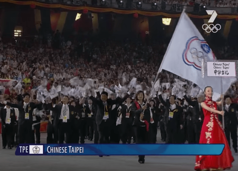而上一屆的奧運舉辦於英國倫敦,自然是使用英文字母的字典順序排列,台灣隊以Taipei為依據排在第180號。2008年則較為特別,主辦國為中國北京,依照慣例使用主辦城市語言,因此中華台北的排名前所未有的「前面」,排在第24名,在日本之後,在中非與中國香港之前。至於主辦國中國,依循慣例壓軸登場,因此並未與台灣或香港的隊伍相鄰出場。使用非拼音文字並非無前例可循,在1988年的漢城(今譯為首爾)奧運,便是用韓文字母的順序排列出場順序。