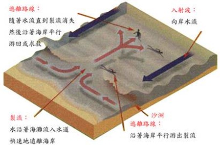 如果各位讀者,在海邊不小心遇上強勁的水流開始把你帶往外海,首先請一定要冷靜下來,不要驚慌也不要一味地往岸上游,因為裂流的水流強大、速度很快,憑己身之力是很難逃脫的,裂流只會把人帶離海岸,不會把人捲到海底。