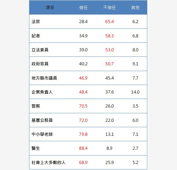 《民間司改會》所做的調查顯示,「缺乏明確客觀審查標準以淘汰真正不適任的司法官」、「法學教育培養出只會考試的法律人」、「有些法律不正當,也有些最高法院判例決議與社會脫節」為人民迫切希望改革的項目。