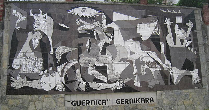 4 月 26 日,德軍地毯式轟炸了格爾尼卡,德軍一連轟炸了數個小時使得小鎮幾乎全毀,也造成當地百姓非常嚴重的傷亡。當時人在法國的畢卡索,正好接受了西班牙共和政府的委託,為共和政府畫一幅將在巴黎萬國博覽會西班牙館展出的壁畫。聽到家鄉的悲慘的消息,畢卡索遂以此為主題,畫出了名作《格爾尼卡》,並以此譴責戰爭及法西斯主義。