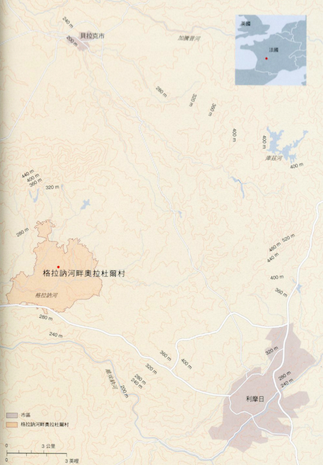法國中南部利穆贊格拉訥河畔的奧拉杜爾村(Oradour-sur-Glane),距離著名的陶瓷城市利摩日(Limoges)並不遠。在過去曾是莫內等多名印象派畫家流連忘返的處所,其田園景致以及彷彿時空靜止般的廣場與中世紀教堂、城堡、石造拱橋,以及十五世紀尖塔城堡都是他們喜愛的繪畫主題。然而,現在若是我們造訪當地,其地景和意象卻與前述的情況大為不同,其舊村莊遺址保留了二戰期間遭受戰火波及而被屠村的歷史記憶。