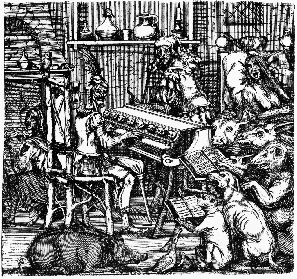 那一架管風琴。但原本應該是音管的地方,卻被十六顆貓咪的腦袋給取代。只要琴鍵被按下,貓咪就會開始悲鳴。當悲鳴聲交織成一首首的曲調,森林中的猴子、狼和其他動物便陸續出現,隨著這來自地獄的音樂聲跳起舞來… 」