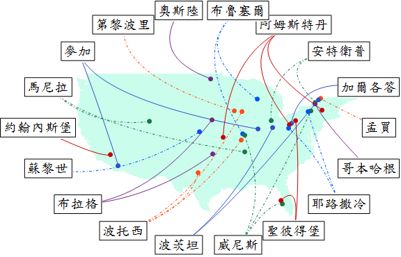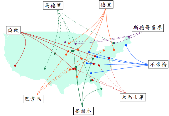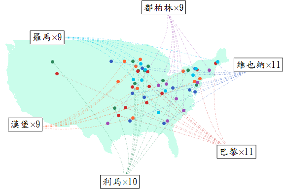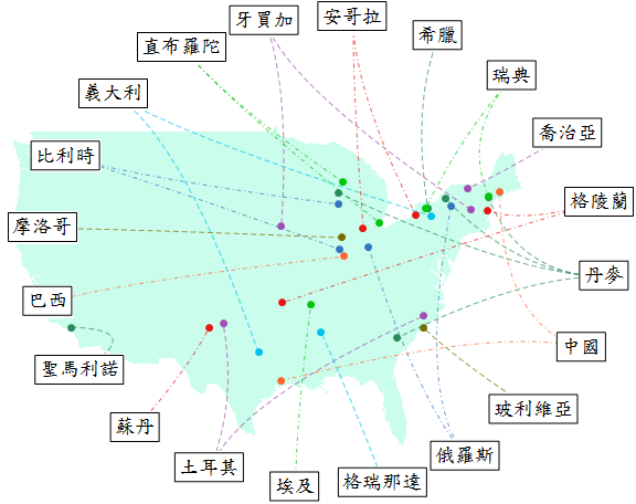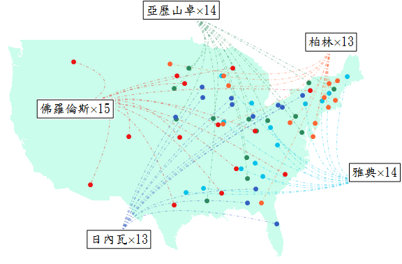 該是揭曉那些地名被山寨最多的時候了。我忘了提,預篩選資料時我把起源於「英語圈」的英國、加拿大、和美國本身的地名排除了--不然太~多~了~畫不完。