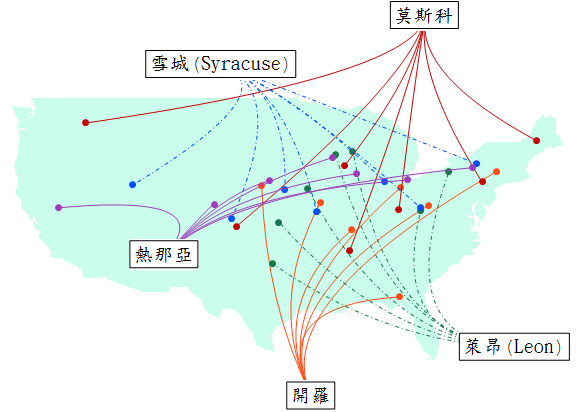 我又在依照慣例揮霍題材了,這材料隨便拆開都可以寫成「你知道嗎?美國有七個城市叫莫斯科」等系列文,但原因就如上面解說並不稀奇--不浪費時間了,有幾個城市通通一起上吧!我要把你們通通畫在圖上。