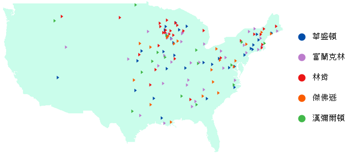 到此看來,美國的移植版地名,即使是其中的佼佼者-- 18 次的黎巴嫩、21 次的曼徹斯特、14 次的雅典……還是沒有超過「本土」名人為名的超級菜市場名,也就是華盛頓(31)、傑佛遜(21)、漢彌爾頓(17)、富蘭克林(35)、林肯(30)、麥迪遜(23)、柯林頓(30)--國父們與先賢組,才是正解XDDDDD