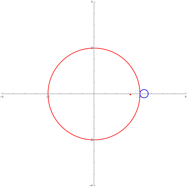 而上右圖中,會形成許多尖尖的點的「花瓣」軌道,必須要月亮速度與地球完全相等,尖點處月亮相對靜止,這個軌跡稱為圓的外擺線,是用洞洞齒輪尺(萬花尺)可以畫出來的一種圖形。