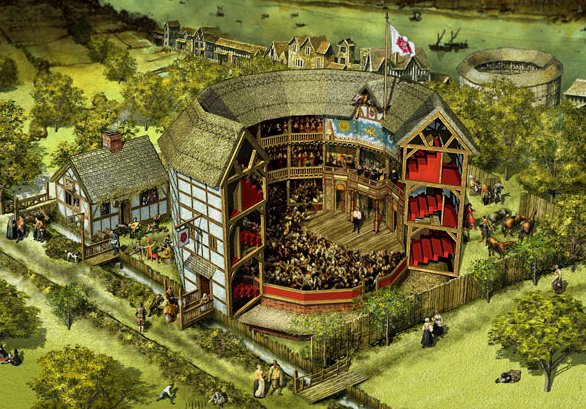 跟典型的露天劇院一樣,「玫瑰劇院」有個中空無加蓋的廣場,周圍再環繞三層樓高的木造廊樓座位區。舞台突出於廣場中央,買不起廊樓座位票的一般市井小民,也能買站票圍繞在舞台三面近距離觀賞演出。