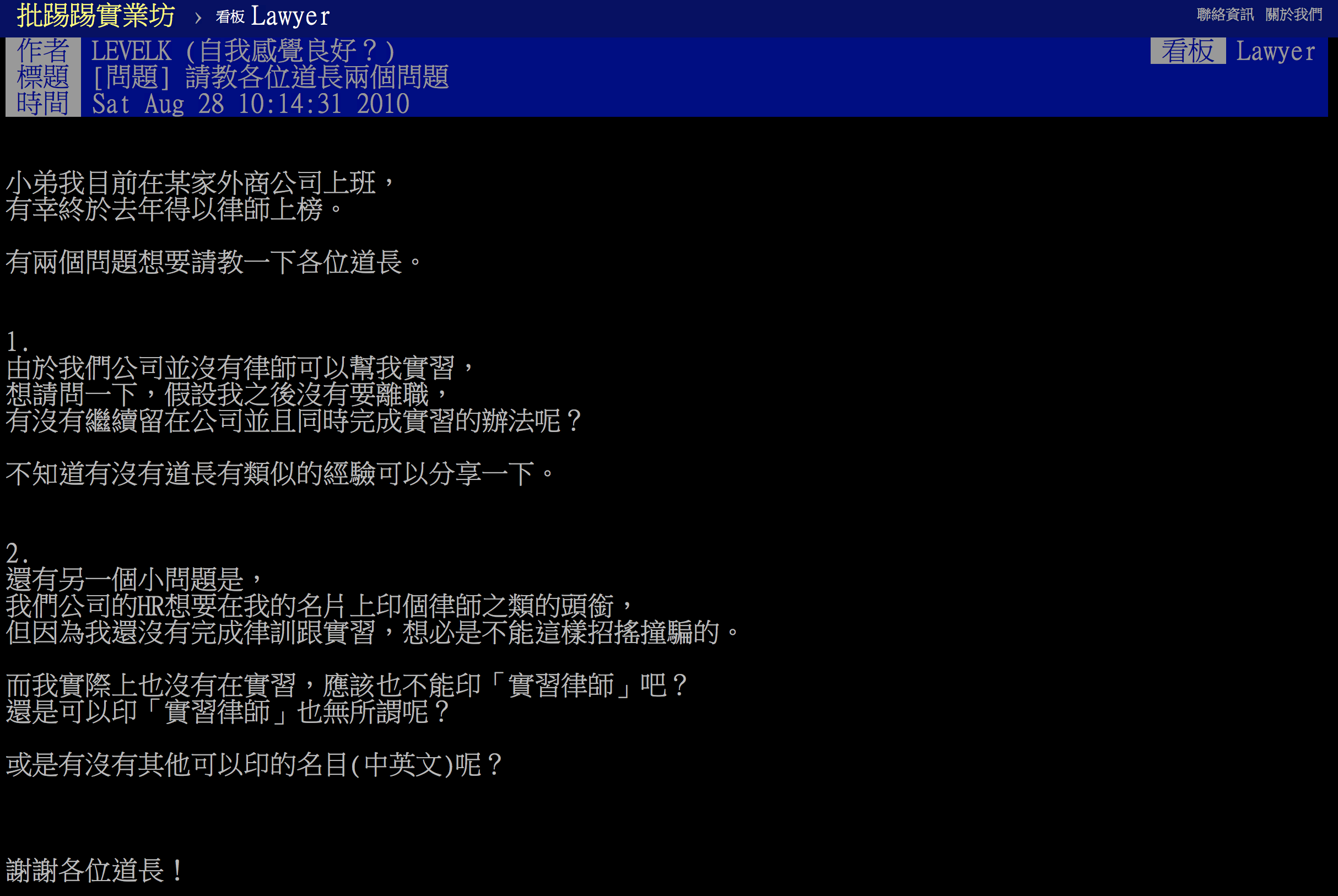 現在在PTT的律師版(Lawyer),也能看到律師鄉民以道長稱呼彼此。