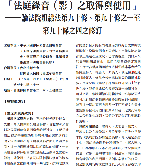 如果讀者曾經參加過像是律師的座談會或看到某些法律相關的文章,想必會聽到或是讀到道長這兩個字。