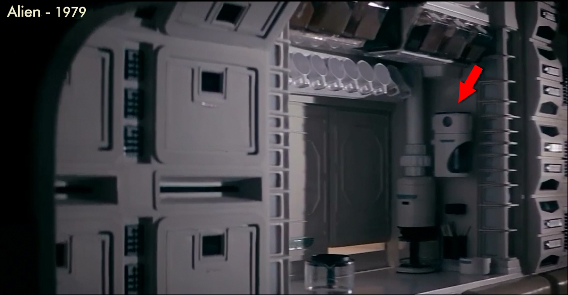 《異形 (Alien)》中的太空船 Nostromo 號,就配備了同型機器。電影開場,在所有太空人睡醒之前,鏡頭在太空船內遊走。其中一個類似廚房或是什麼實驗室的角落,就安裝了一模一樣的白色機器在牆上。然而,整部電影都沒見著 Ellen Ripley 中尉或是其他組員拿這個裝置來用垃圾發電、用愛發電、穿越時空或是磨豆子什麼的,我們始終無法確定它在 2122 年的真實用途。