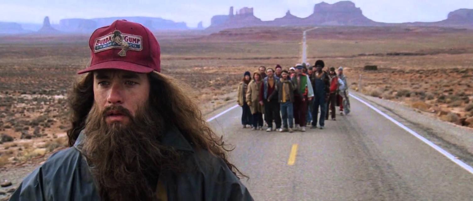 Run, Forrest! Run! 事實上從電影一開始,阿甘就為了各種不同的理由跑步:為了逃避霸凌、為了救自己的好友、為了回家…..。「沒什麼特別的理由」的輕描淡寫,其實意味著比以往更為艱難萬分的理由:
