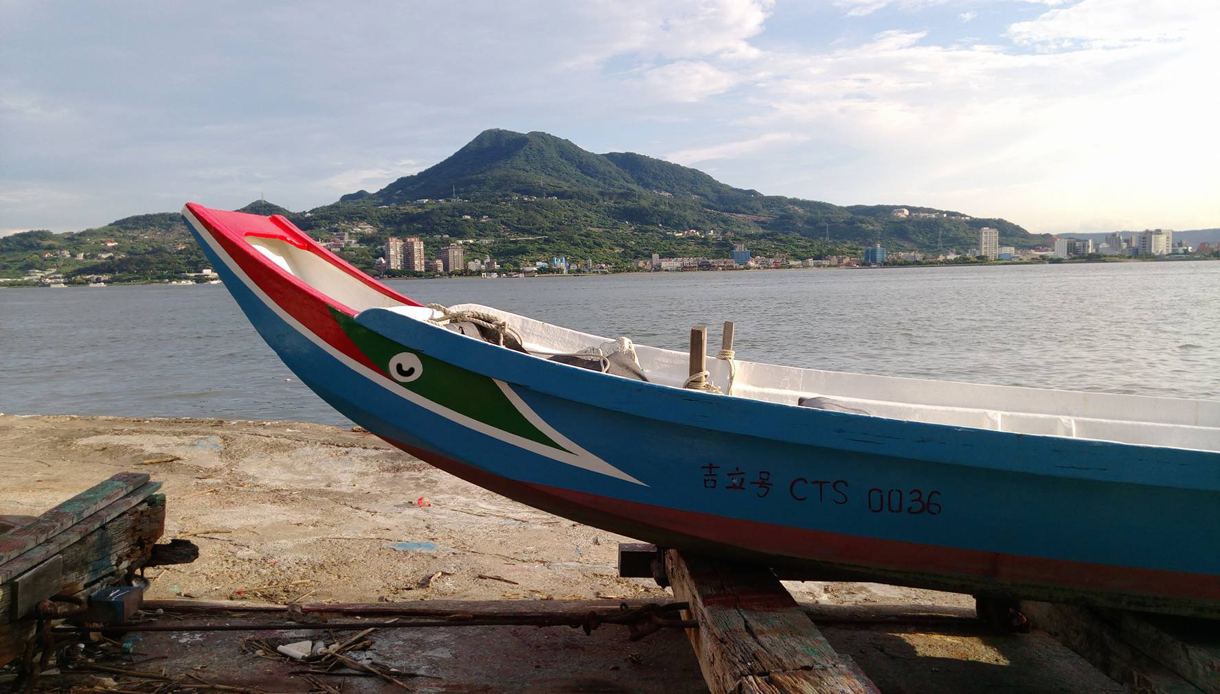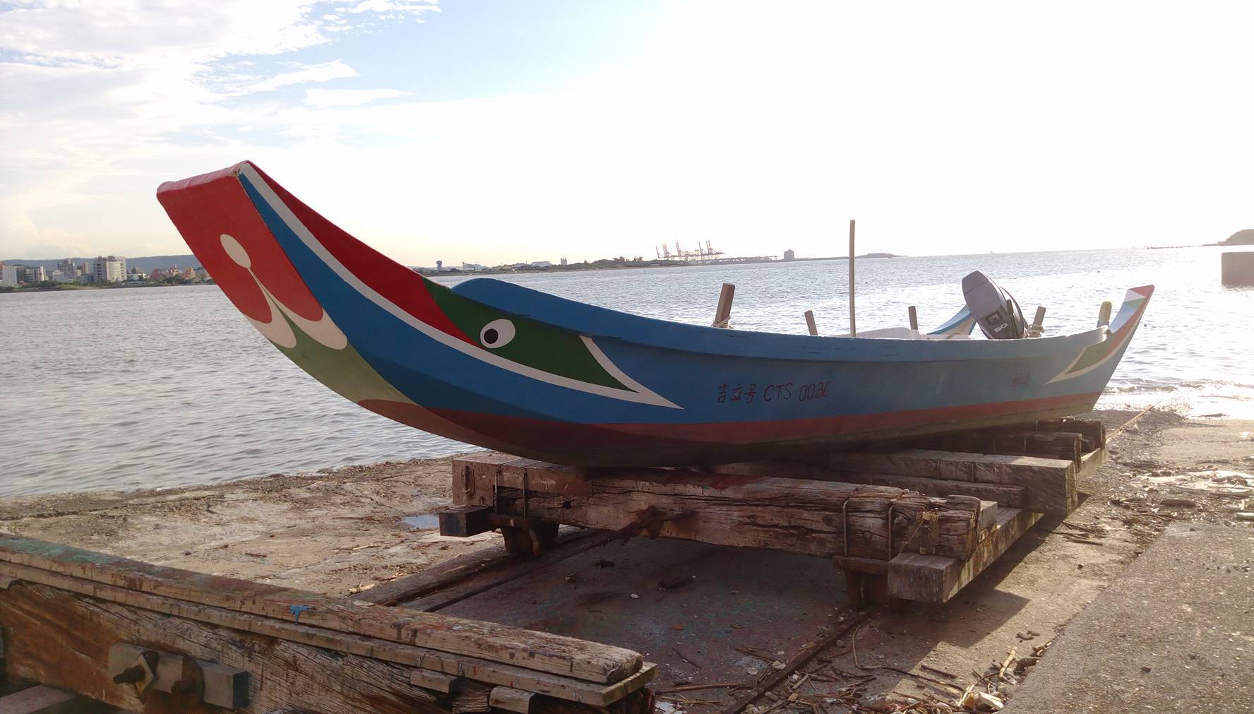 這些長著眼睛的船,叫做「舢舨」(注音:ㄕㄢ ㄅㄢˇ,英文:sampan,以前也有三舨、三板等說法),是一種源自中國南方的平底木船,雖然這名字聽起來有夠文言,但在漁業法裡,確實是以「舢舨」(註1)一詞訂定相關規範。也就是說,吉立號的外型雖然很 Old-fashioned,但仍然是一艘「舢舨」的最佳證明,是他肚子上的船牌編號「CTS」,在漁業法規的範疇裡就代表「動力舢舨 」。(沒錯,車有車牌,船也有船牌!)