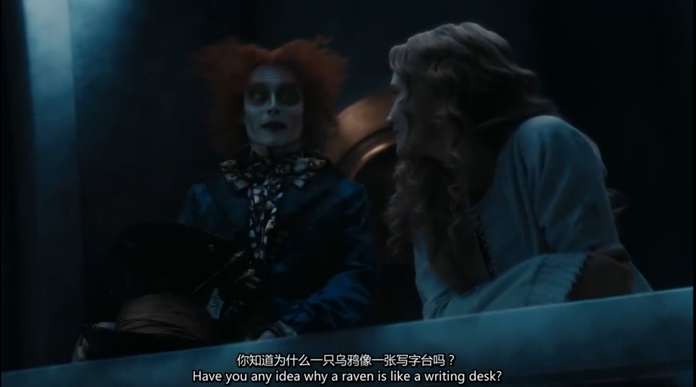 愛麗絲反問了瘋帽客:為什麼烏鴉會像寫字檯?