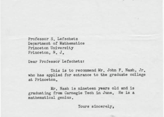 冷推薦: John Nash 的研究所入學推薦信上面只寫了一句話…